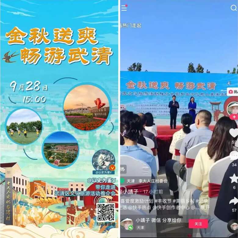 在直播和互动宣传中,网络名人充分发挥自身自媒体优势和影响力,通过多种形式对武清区文化旅游活动推介会暨乡土文化能人展示活动进行了全方位、多角度的网上宣传推介。百万粉丝网络名人“以史为鉴V”在直播过程中,详细生动地介绍了武清文旅活动和重点文旅项目,并与网友们实时互动,吸引了大量网友在线观看,总人数达8.7万余人次,#大美武清津彩畅游# 微博话题阅读量达110万余人次,取得良好网上宣传效果。