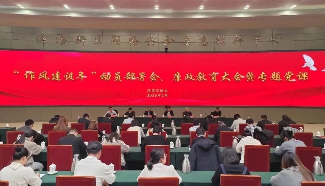 日前,滨海新区区委网信办召开“作风建设年”动员部署会暨廉政教育大会,主要负责同志主持会议并讲专题党课。区委网信办、区网络安全应急指挥中心全体干部参加。