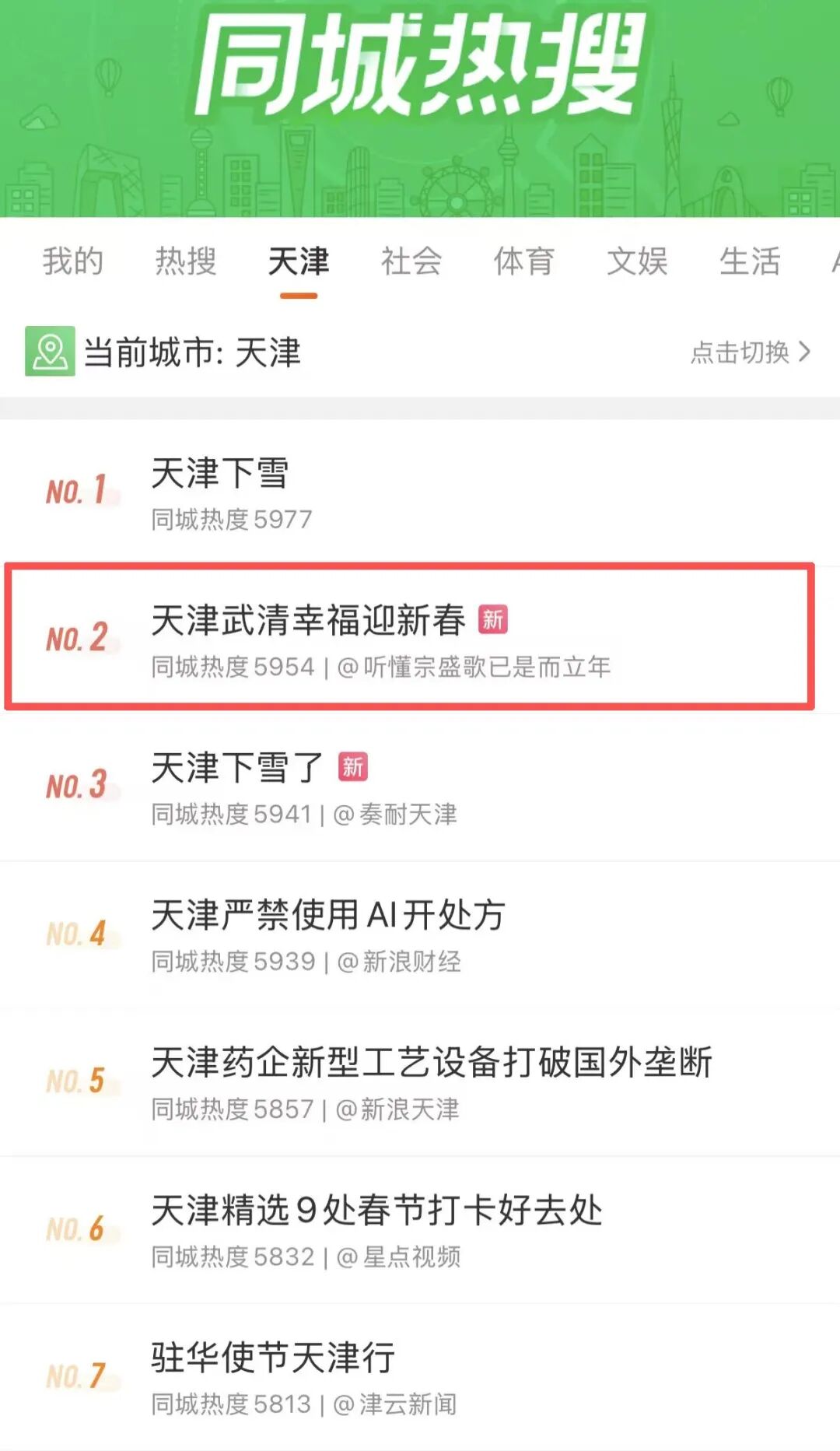 在互动宣传中,网络名人们充分发挥自身影响力,通过图文、短视频等形式,推出系列正能量稿件,参与互动话题讨论。#天津武清幸福迎新春#微博话题登上同城热搜榜,阅读量超1140万余人次,取得良好网上宣传效果。