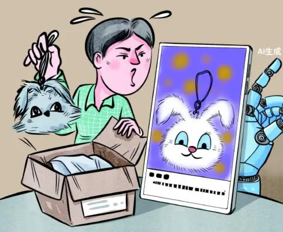 这样的“照骗”并非个例。近日调查发现,随着AI生成技术在电商领域的快速渗透,不少商家开始使用AI生成的图片、视频作为商品宣传素材,凭借精美视觉效果吸引消费者下单。但这类商品宣传往往隐藏“货不对板”的问题——AI生成图过度美化商品外观、夸大功能细节,导致实物与宣传图差异显著。加之商品详情页缺乏真实信息披露,一定程度上损害消费者知情权和选择权,相关消费纠纷数量持续攀升。