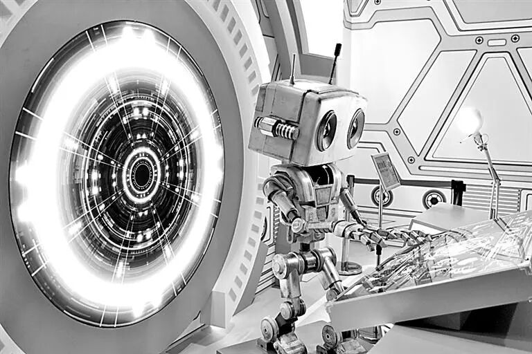 中国科技馆航天科幻扩展现实大空间体验展中的人工智能机器人星启8号。新华社发