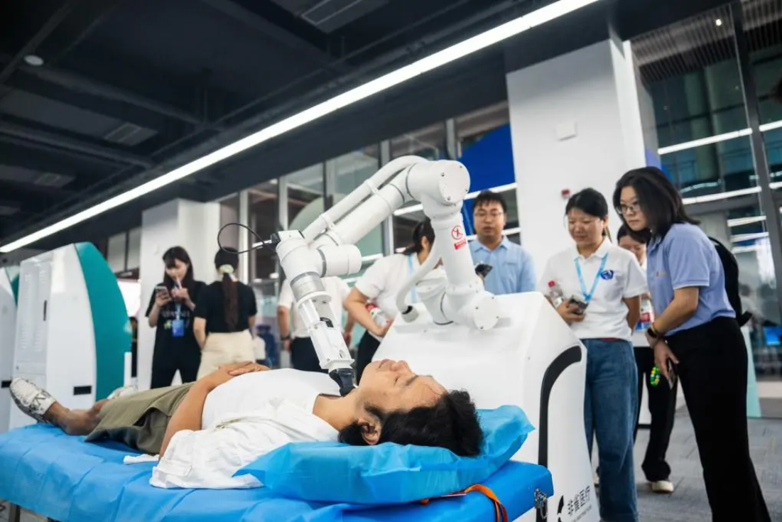 图片9月15日,在湖南湘江新区长沙智谷,观众使用颈部超声诊断机器人进行体检。新华社记者 陈思汗 摄