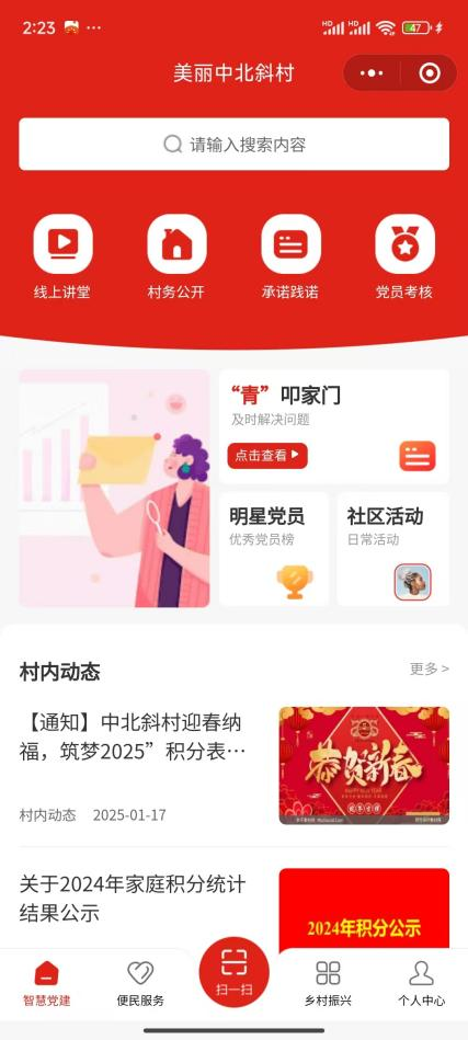 一是搭建党建统领场景,线上开展文艺党课、微党课,形成线上教育阵地;设置党员积分排行榜,对党员参与组织活动、服务群众、志愿服务等进行数字化考评;通过“青”叩家门模块收集村民对党总支的意见建议,以数字化手段提高党组织管理效率、增强凝聚力。二是搭建民生服务场景,开发“好人好事”“志愿活动”等板块,利用小程序“你拍我办”,成功解决大事小情73件,问题响应率达到100%,让大事小情“一键”解决。结合“四百四微”等主题实践活动,成立扶弱帮困、矛盾调节等多支志愿服务队,动员党员群众积极参与基层治理。三是搭建园区协同场景,线上开设“振兴积分”,企业通过按时缴纳租金、参与村居治理等获取助企积分,通过积分兑换员工查体、借用年会场所、物业折扣、法律咨询等服务,村两委组建助企服务队,实施“服务送上门、业务送上门、政策送上门”的“红色店小二”工作模式,为企业运行保驾护航。今年共完成新租、续租商户4家,巩固并新增收入近473万元,激活园区与企业的共建活力。