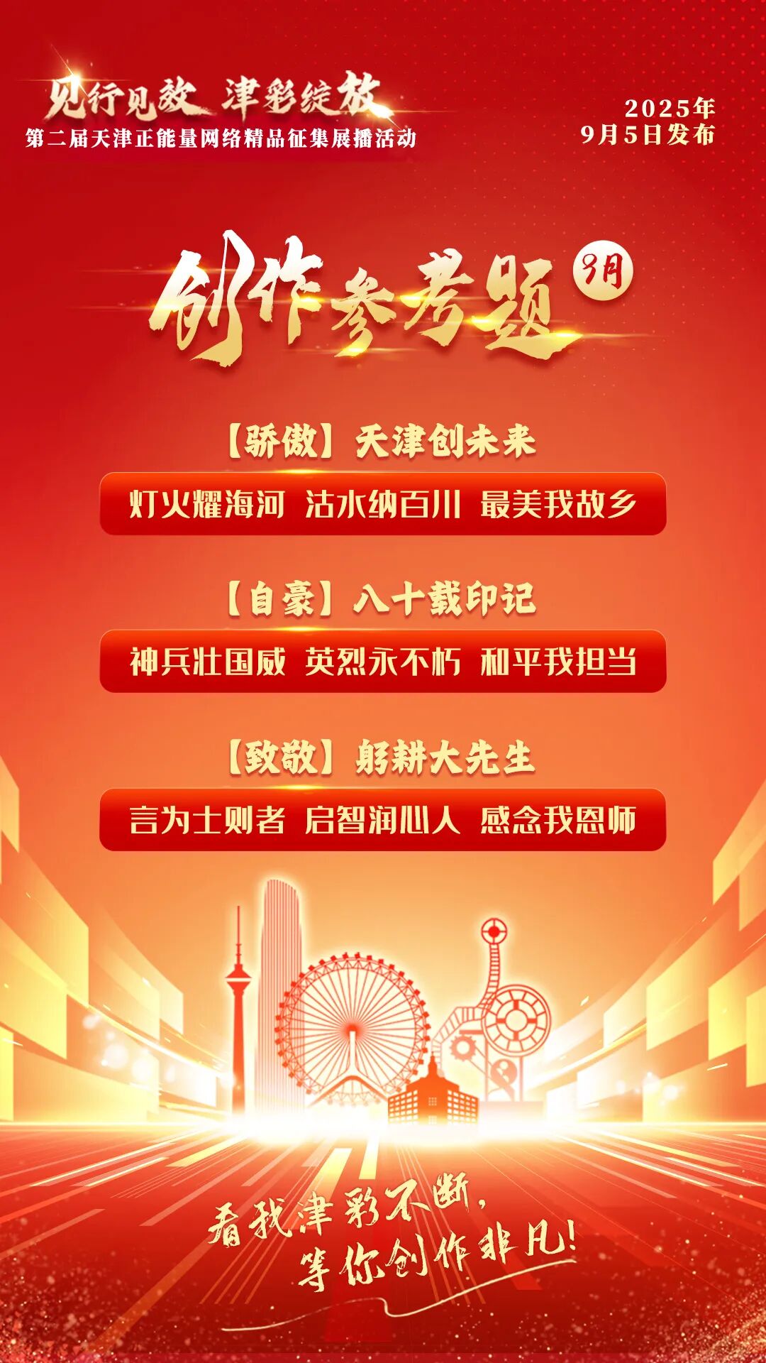 “见行见效 津彩绽放”2025第9期创作参考题来啦!